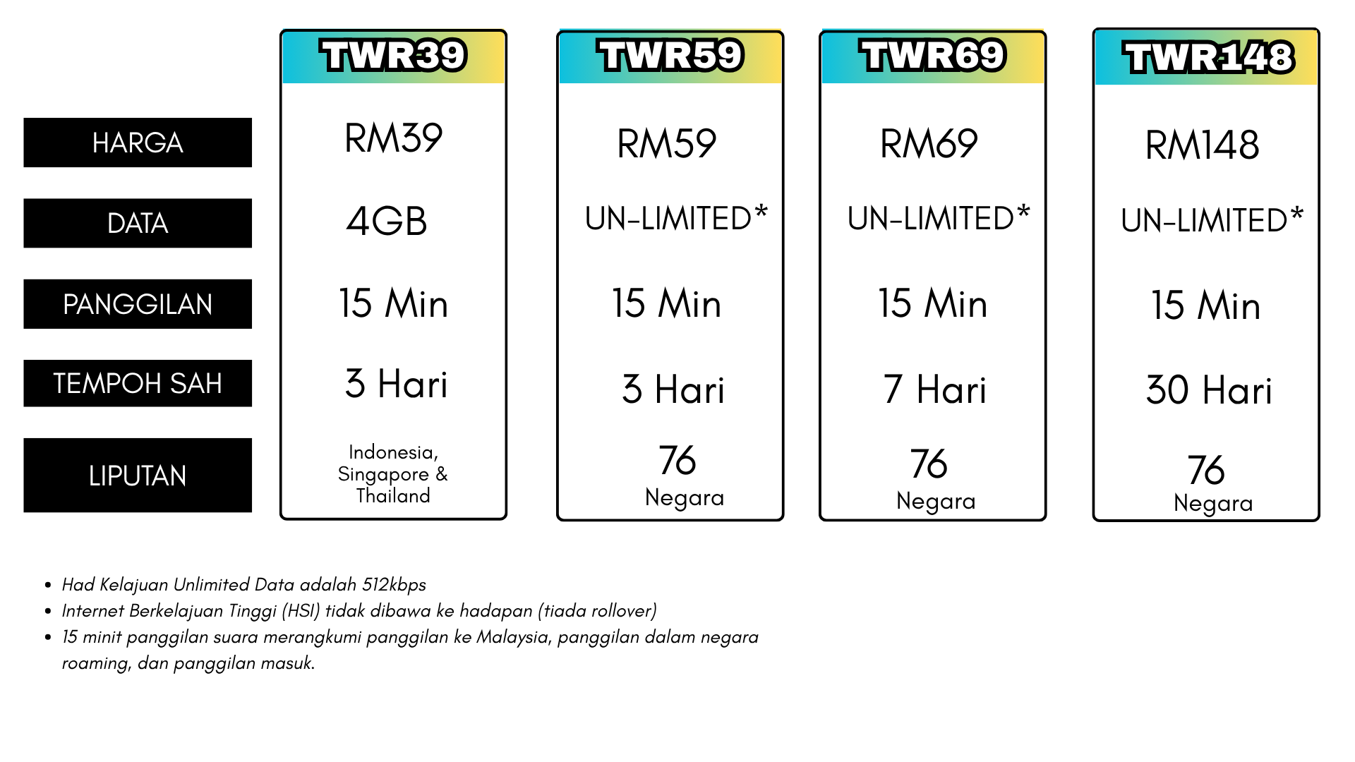 Nikmati kadar Perantauan Antarabangsa yang sama seperti CelcomDigi (Digi).